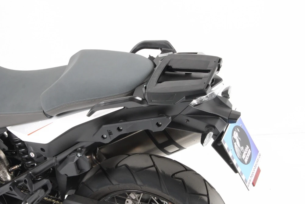 With a “ALUrack” rear rack on your KTM 790 R 1050 / 1090 ADV/R / 1190 ADV/R / 1290 ADV R/S/T and now the Husqvarna Norden 901 you can quickly & securely mount any of Hepco Beckers Adventure or Sport Touring Top Cases.ย Plus, it is a true rear rack not just a case mount, so you can also securely attach many types of soft luggage too. Front Bow can be detached when not required.