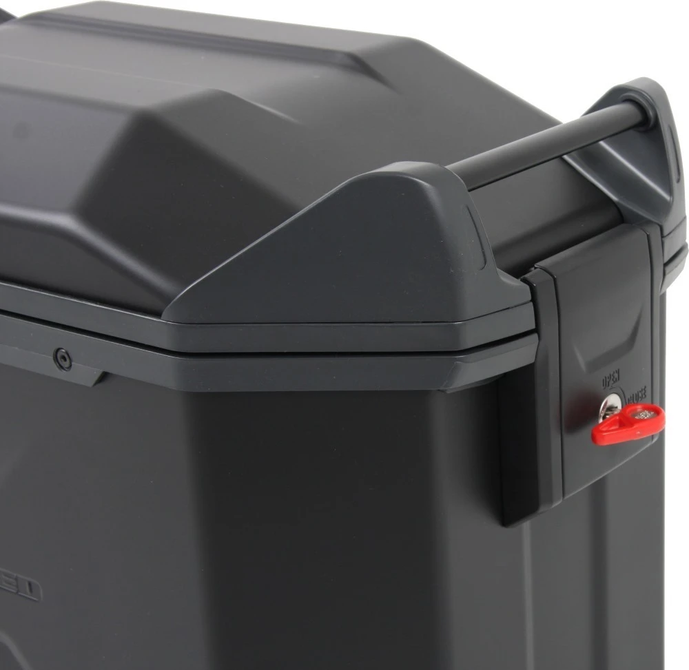 With great attention to detail the design shows up-to-date shapes and lines. This is what makes it special compared to other aluminum cases. No matter which motorcycle – you canβt go wrong with this top loading case.