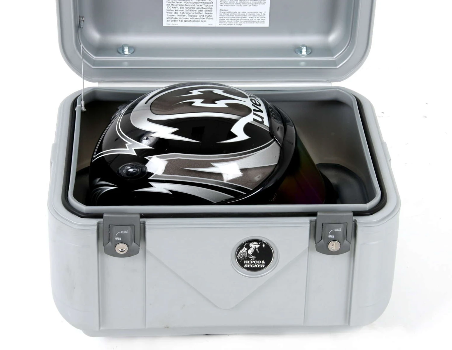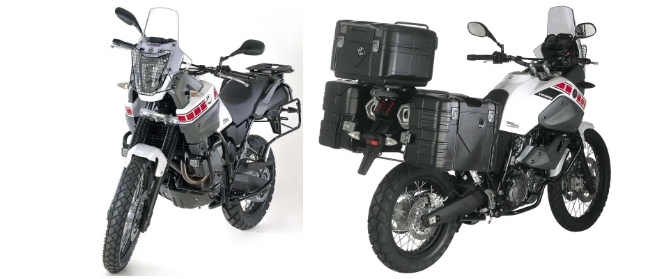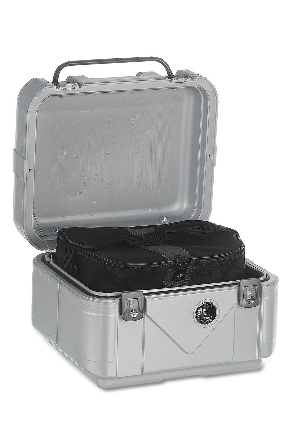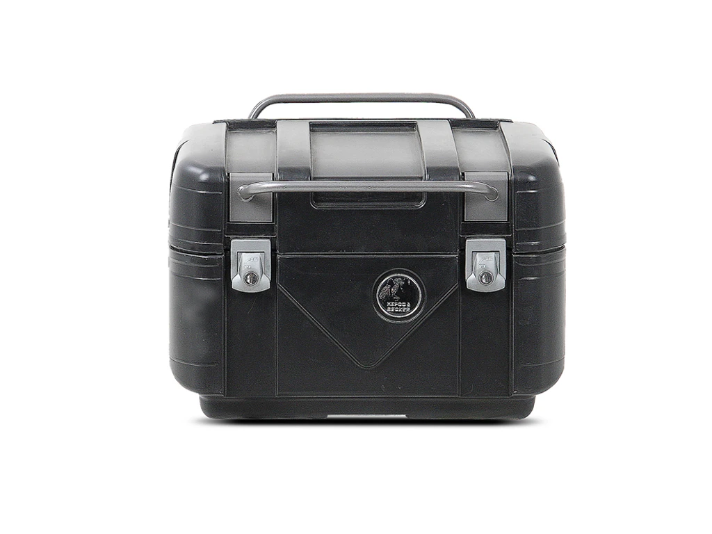 When it comes to adventure bike luggage top cases (panniers), Hepco-Beckersย Gobi TC42 is the answer for most setups.ย This motorcycle top case sets a high standard whether for everyday use or right through to the most extreme situations. ย Made from aย Special double-walled shell of highly impact-resistant plastic, it is a top loader & watertight thanks to special seals. ย Gobi has four colour cominations,ย Alu Optik,ย Black, Blackย Editionย & Grey!