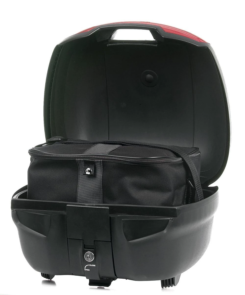 The Hepco & Becker Journey TC40 top case system, offers dynamic performance and ensures a safe trip for your gear on every tour!Β This model is available in black with a silver insert panel.Β (Don’t forget, these panels can be removed & colour matched to your motorcycle).Β Securely key locked onto our rear rack but still easy to mount or dismount when required..