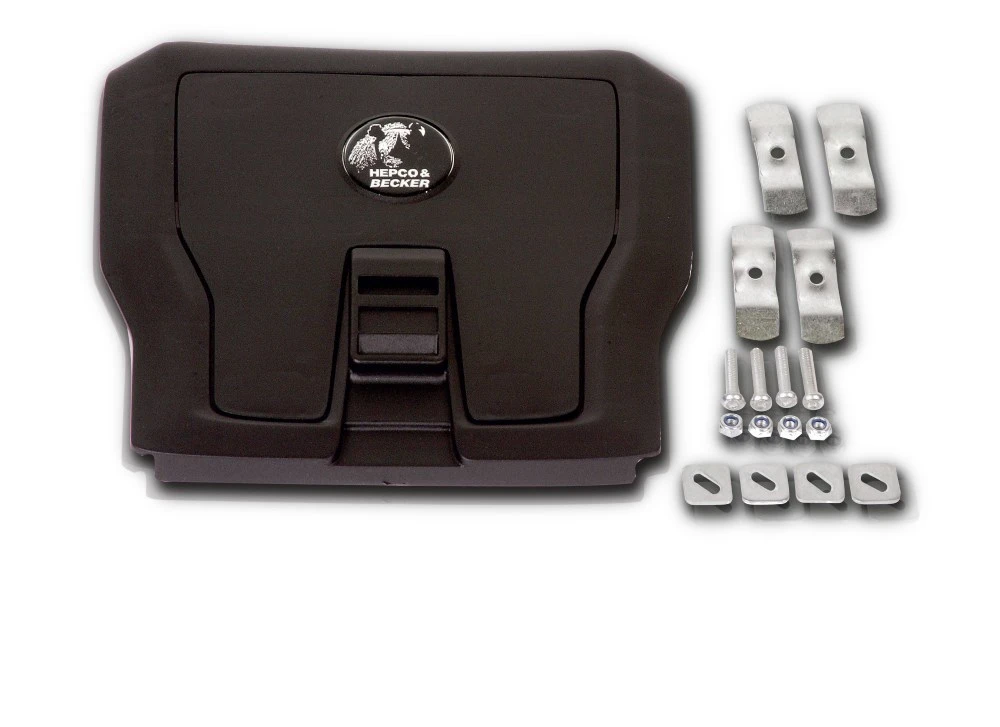The Hepco & Becker Journey TC50 top case system, offers dynamic performance and ensures a safe trip for your gear on every tour!ย This is the universal mount model and is available in black with a silver insert panel.ย TC50 is securely key locked it’s palette but is still easy to mount or dismount when required. Features single key operation.ย Clamping plates included with the universal palette allows mounting on existing tube racks or it can be bolted down to “FLAT” surfaces.ย See specifications for more!