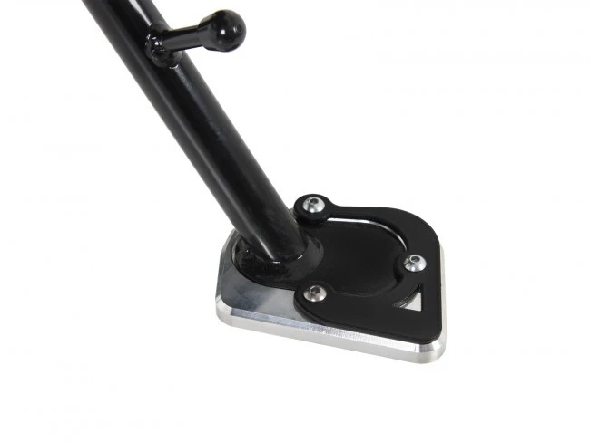 With a Hepco Becker Side Stand Enlargement (kick stand) fitted to your LC BMW R1200GS & R1250GS Adventure 2014-2016, or R1200GS RallyX 2017, stabilty when parked on soft surfaces is assured. Being fully loaded or parking on unpaved surface can cause the motorcycle side stand to begin to sink. Hepco & Beckers precisely contourmilled side stand enlargement stops this danger! More than 100% larger contact area Quickly bolted to the side stand Contour milled thick alloy base Secure positioning of the machine on all surfaces Black anodized clamp on top.Β ALSO fits BMW R1200GS LC / 2017 onward