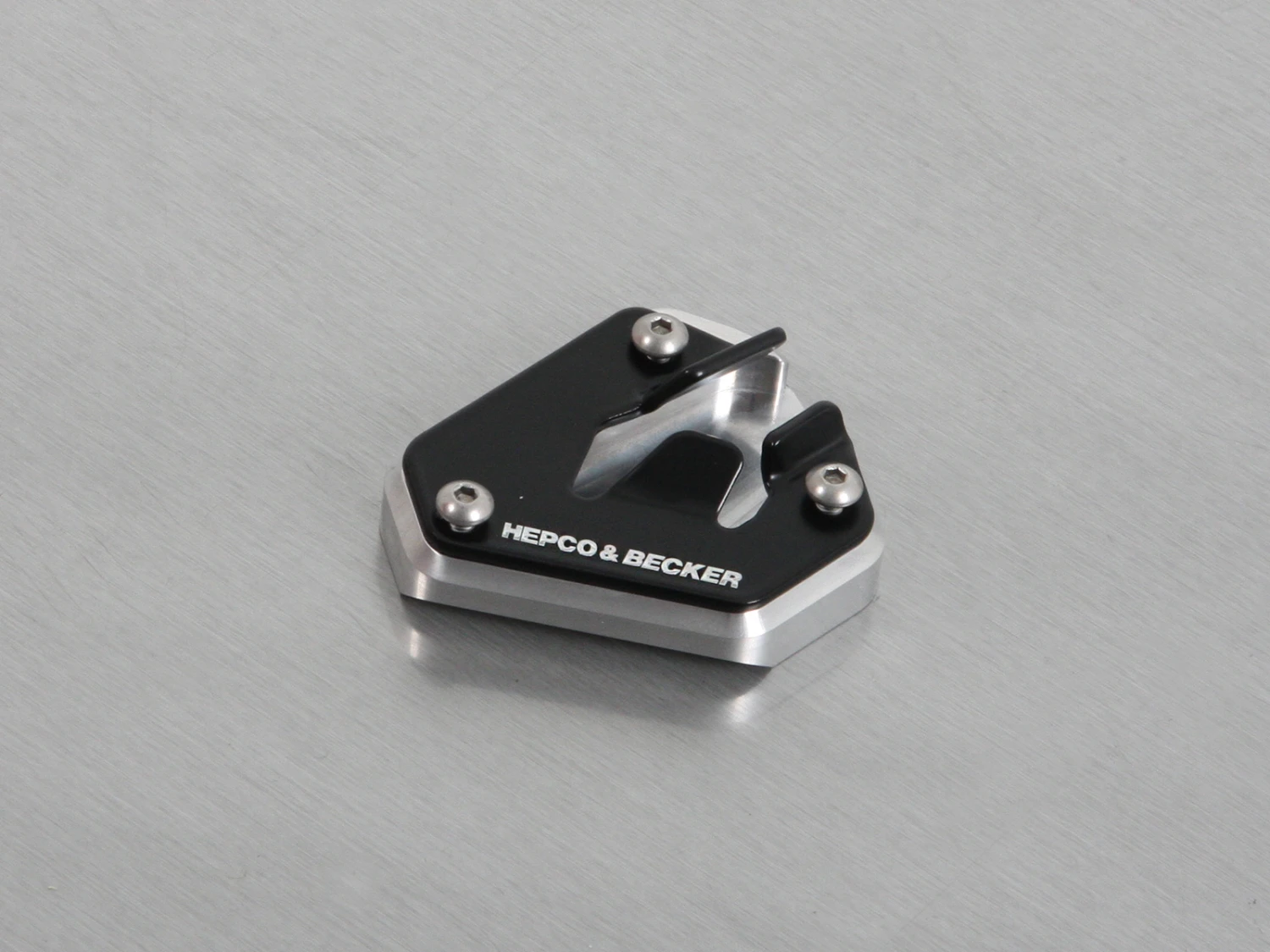 With a Hepco Becker Side Stand Enlargement (kick stand) fitted to your Triumph Tiger 800 / 2010-2014, stabilty when parked on soft surfaces is assured. Being fully loaded or parking on unpaved surface can cause the motorcycle side stand to begin to sink. Hepco & Beckers precisely contourmilled side stand enlargement stops this danger! More than 100% larger contact area Quickly bolted to the side stand Contour milled thick alloy base Secure positioning of the machine on all surfaces Black anodized clamp on top