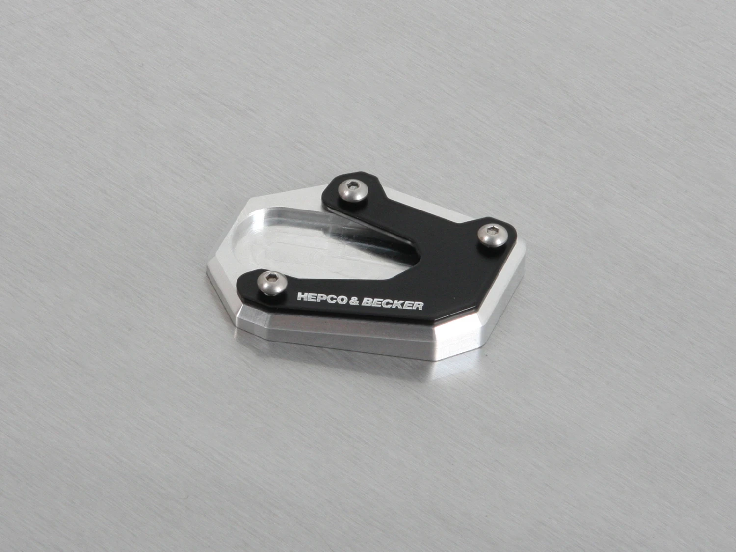 With a Hepco Becker Side Stand Enlargement (kick stand) fitted to your Suzuki , stabilty when parked on soft surfaces is assured. Being fully loaded or parking on unpaved surface can cause the motorcycle side stand to begin to sink. Hepco & Beckers precisely contourmilled side stand enlargement stops this danger!