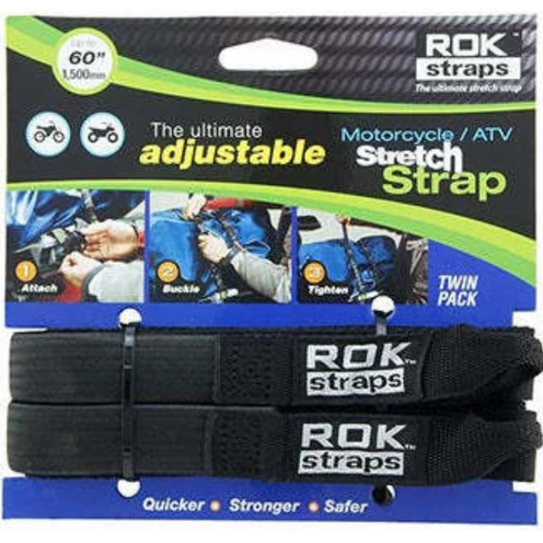 Secure anything to a motorcycle without scratches with these flat cargo motorcycle straps – no hooks cargo straps!ย Two piece construction, stretch section has aย Blackย UV polyester weave over natural rubber core. Woven – Sewn Loops both ends.ย