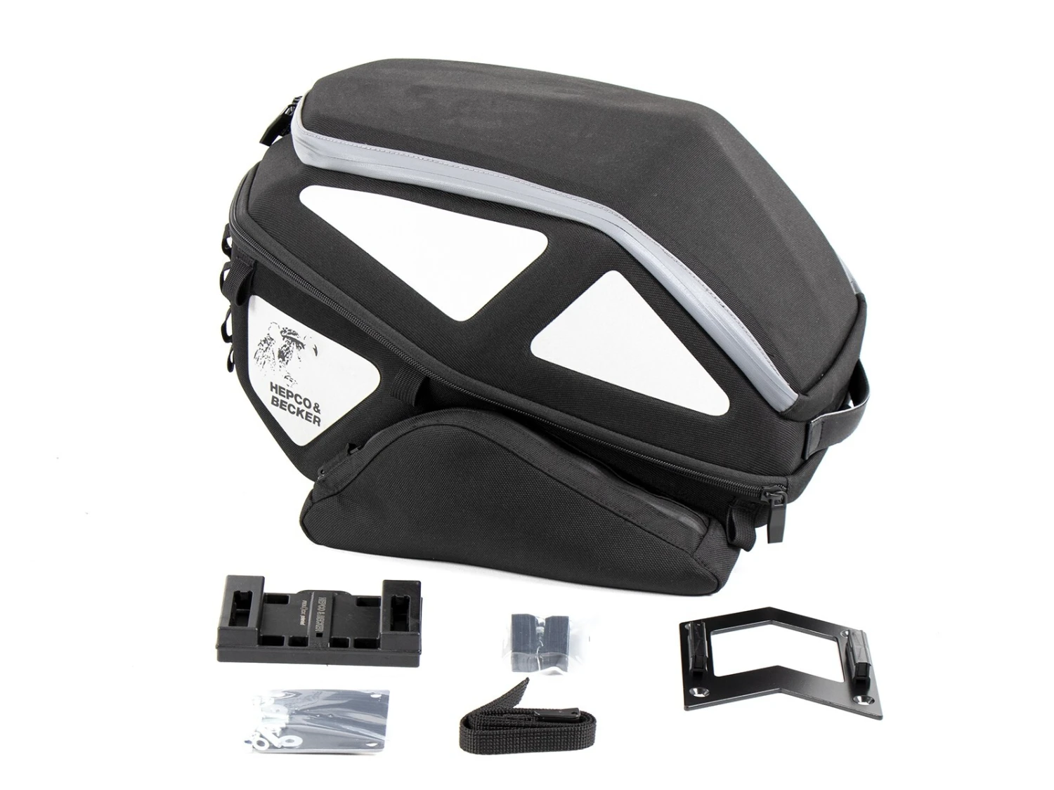 Theย Hepco &ย Beckerย Royster Rearbag Lock-itย offers two types of attachment: The bag can be mounted on a model-specific sports rack in a flash using the Lock-it attachment or conventionally using a reliable 4-point tension belt attachment on a passenger seat.