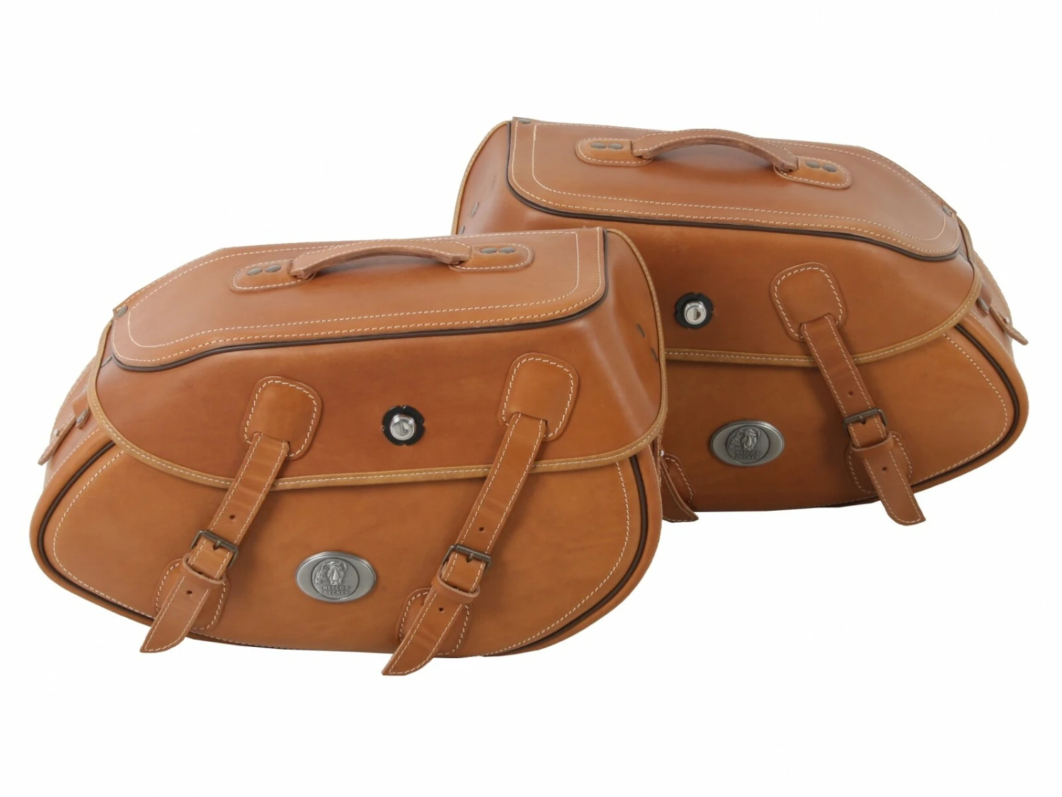 With their dynamic, timeless look, these HEPCO&BECKER saddlebags enhance any chopper. Our saddlebag leather collection is made of smooth pure 3-4mm thick cowhide with black aniline dye throughout. Extra strong, tearresistant seams for the best stability and long life. All of our saddlebags are produced especially for us in our traditional leather craft shop. The bags hold their shape extremely well thanks to hidden shape reinforcement and a plastic double rear wall – no dropping, no flapping.