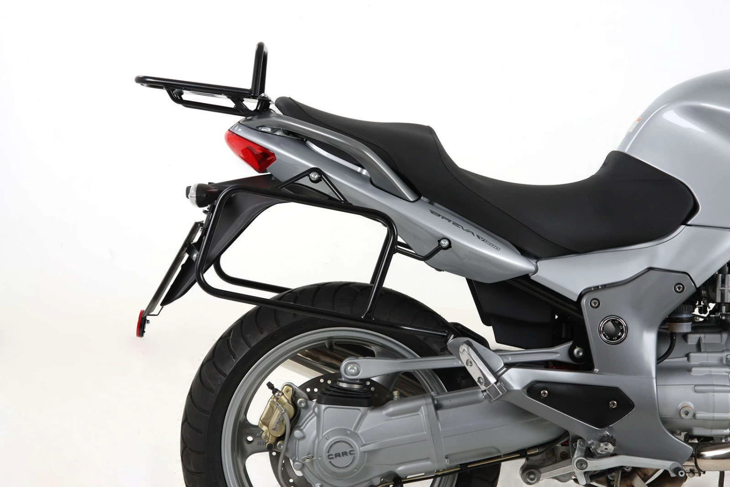 With a sturdy ‘bolt on’ luggage side carrier on your MOTO-GUZZI 850/1100/1200 Breva / 1200 Norge / V1200Sport you can quickly & securely mount any of Hepco Beckers Adventure or Sport Touring luggage systems. Not only that you can also securely attach many soft luggage systems too.