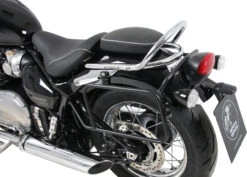 HEPCO&BECKERs standard side carriers are firmly bolted to the motorcycle. All normal hard luggage cases from Hepco & Becker fit this carrier. The cases are fastened to the carrier by means of a quick release fastener. For this purpose, an aluminium adapter is required which is normally included within the delivery of the case. (Item number: 700114) This aluminium adapter is screwed to the rear right and left of the carrier and offer the holder for the luggage lock.