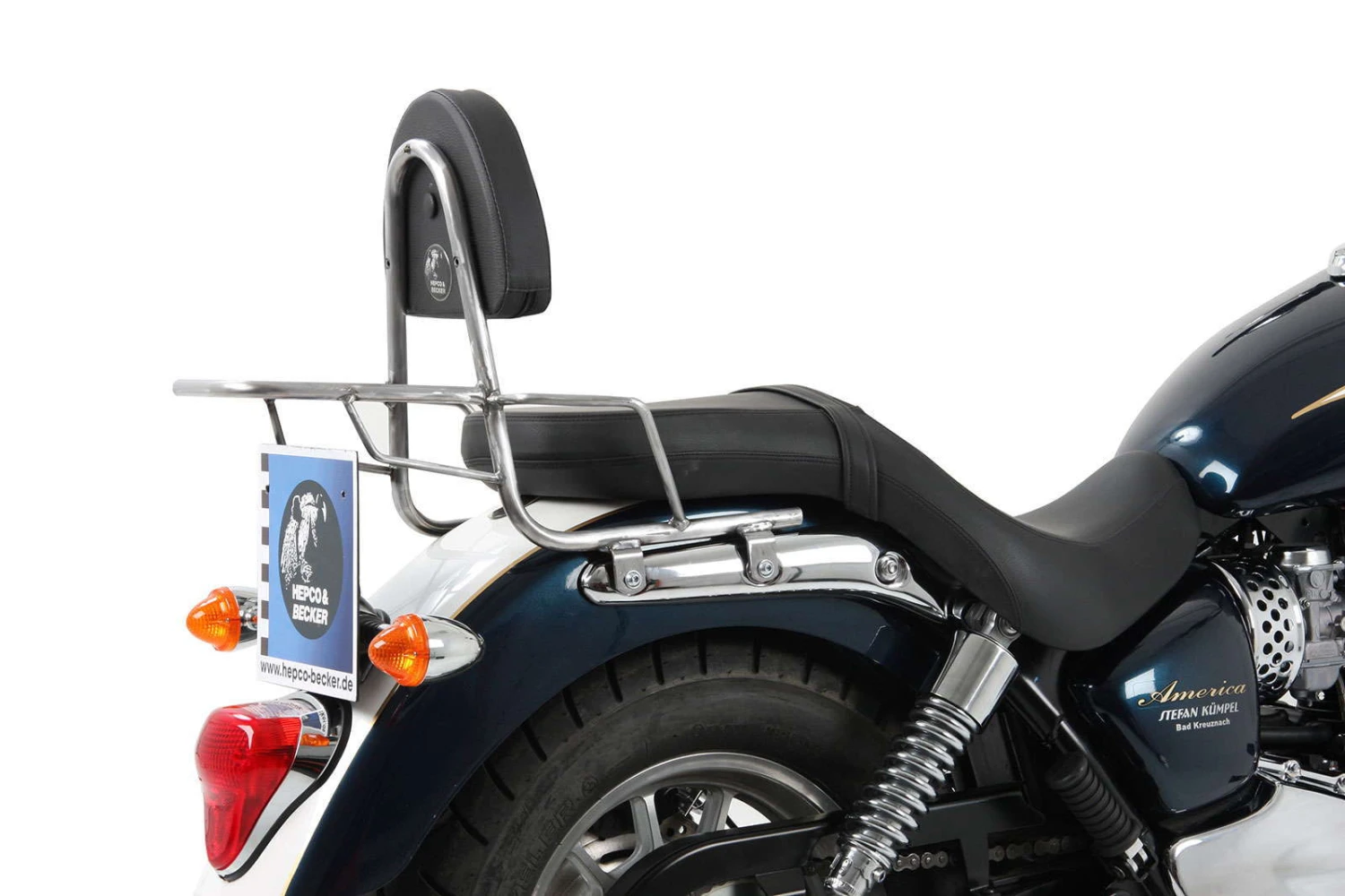 A Hepco Becker Sissybar fitted to your Triumph Bonneville Amerika / Speedmaster / 2011 ->, will provide pillion comfort and add a stylish look to your bike. Available with or without a rear rack you will have the option of securing a soft bag or even one of the many Hepco Becker leather “Handbag” styles. The models with rear rack are not compatible with the Hepco & Becker hard topcases.