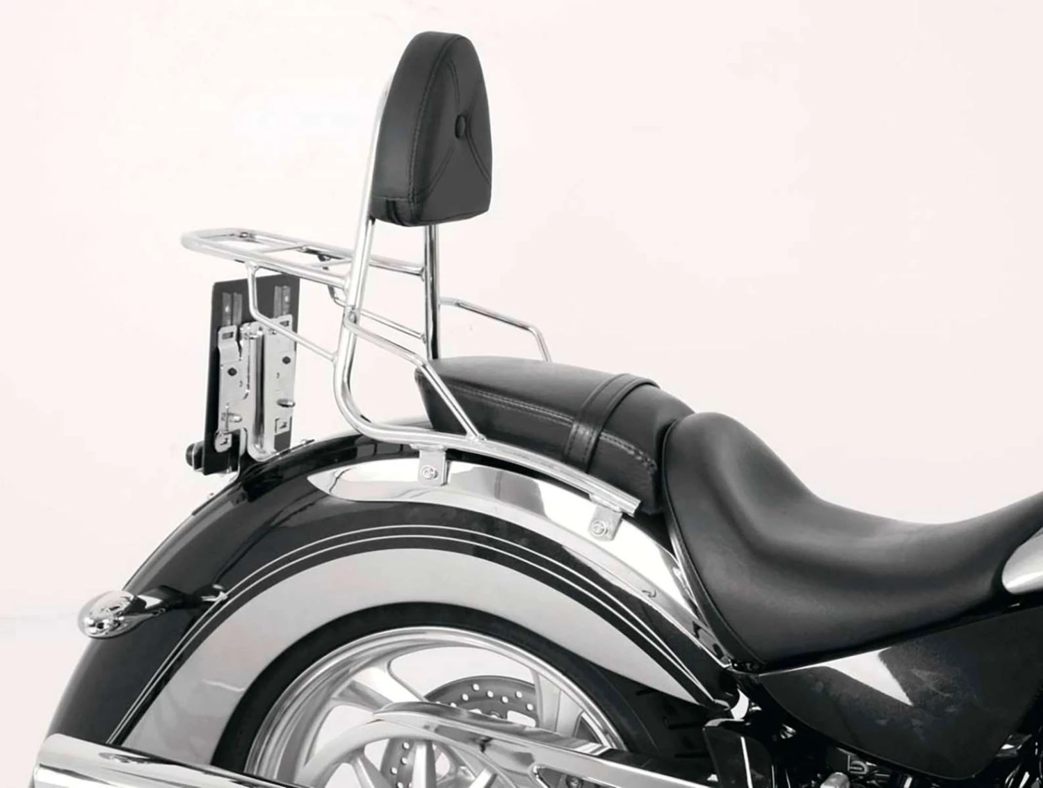 A Hepco Becker Sissybar fitted to your Victory Kingpin, will provide pillion comfort and add a stylish look to your bike. Available with or without a rear rack you will have the option of securing a soft bag or even one of the many Hepco Becker leather “Handbag” styles. The models with rear rack are not compatible with the Hepco & Becker hard topcases.