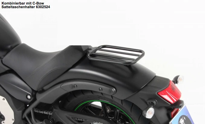A Hepco Becker Solorack with no backrest fitted to your Kawasaki Vulcan S will provide carrying capacity and add a stylish look to your bike. Available with or without a backrest you will have the option of securing a soft bag or even one of the many Hepco Becker leather “Handbag” styles.