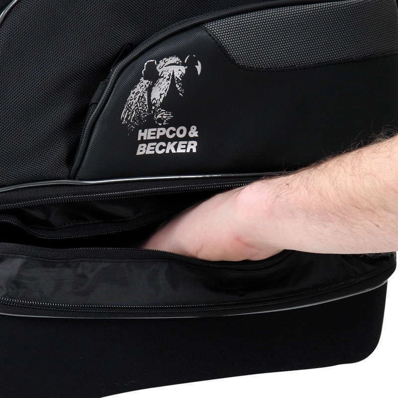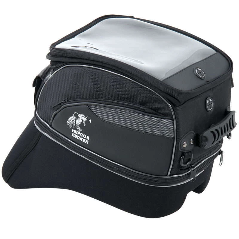 A Tankbag “Street” Tourer Enduro from Hepco & Becker is a variation on our Tankbag range with a shaped lower shell better suited for curved Adventure bike tanks such R1200GS, Triumph Xplorer, KTM 1190, Super Tenere etc. With the easy to use patented ‘Lock It’ Tank Ring mounting system, your tankbag is secure, yet locking on & releasing are quick and easy. Motorcycle Adventure Products! We’ve got your storage needs covered!
