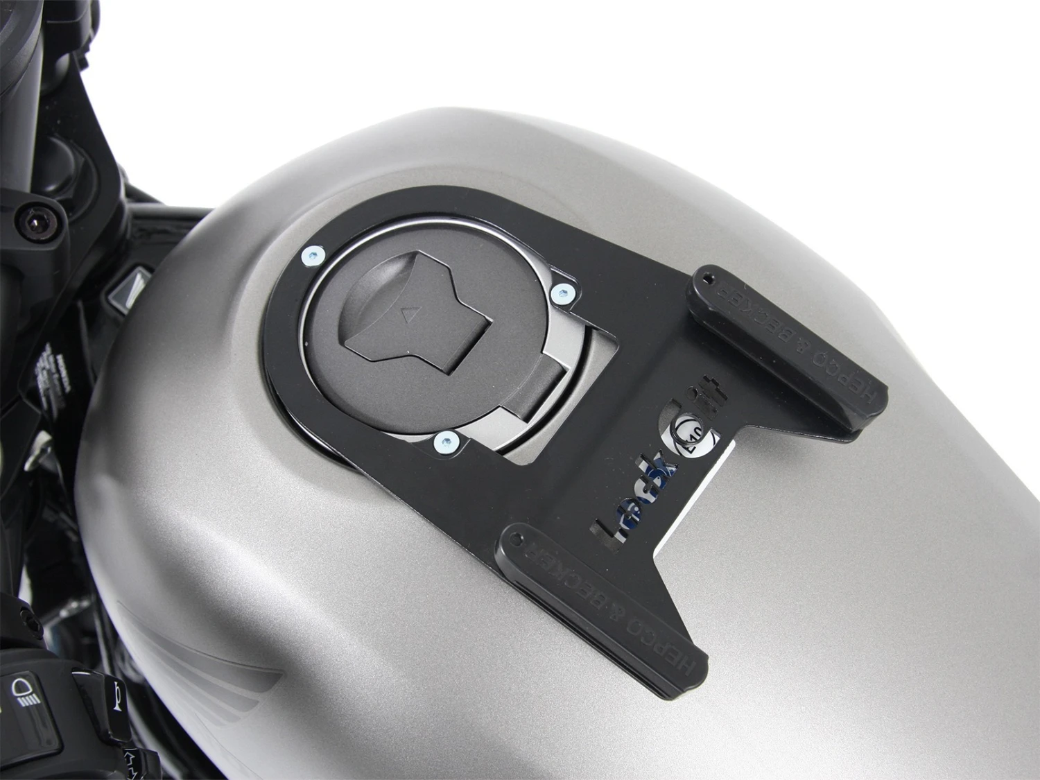 With a Hepco Becker Tank Ring for Honda CM 50 Rebel from 2017, you can securely magnetically mounts any H&B Tank Bag. Daypack, Royster or three sizes of Steet Tourer! All available from Motorcycle Adventure Products.ย Please watch the video on mounting our tank bag range with our patented FIDLOCK magnetic system!