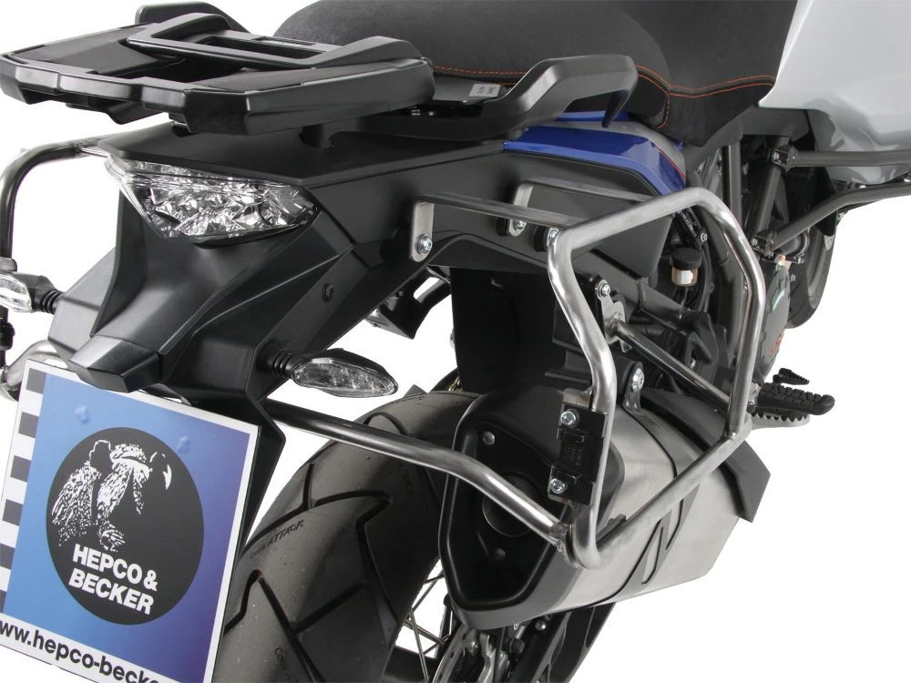 Hepco & Beckers Cutout Sidecarrier and Xplorer case set are the complete package for mounting a luggage system on KTM 1050, 190, 1190, Adventures & R plus 1290 Super Adventure. This package offers a special set of sidecarriers made out of stainless steel where the exhaust side conforms to the high muffler and is then combined with a special set of Xplorer Cutout boxes. The cutout system maximises stowage while minimising overall width.